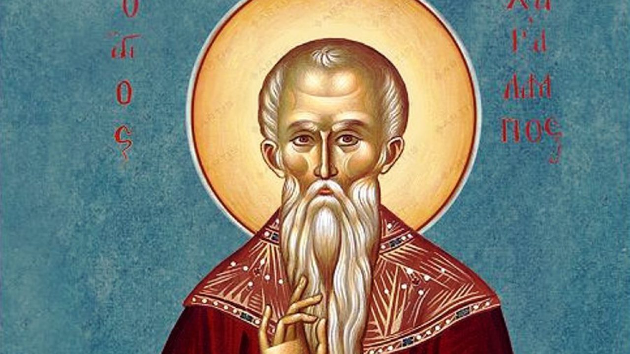 Το νέφος των Μαρτύρων της Εκκλησίας μας περιλαμβάνει ηρωικά πρόσωπα ευγενών και άσημων, αρχόντων και αρχομένων, πλουσίων και φτωχών, κληρικών και λαϊκών, νέων και γερόντων, ως ηχηρή απάντηση σε όλους εκείνους τους κακεντρεχείς και ανιστόρητους, οι οποίοι θέλουν τον Χριστιανισμό να είναι τάχα δημιούργημα επιμέρους ομάδας. Μια ομάδα Μαρτύρων είναι και οι ιερομάρτυρες, οι οποίοι όντες κληρικοί, έδωσαν τη μαρτυρία τους για το Χριστό και την επισφράγισαν με τη ζωή τους. Ένας από αυτούς υπήρξε και ο άγιος Χαράλαμπος, μια ιδιαιτέρως ηρωική μορφή της Εκκλησίας μας. Γεννήθηκε περί το 90 μ. Χ. στη Μαγνησία, πιθανότατα, της Θεσσαλίας, κατ’ άλλους στην Μαγνησία της Μ. Ασίας. Οι ευσεβείς γονείς του τον ανέθρεψαν χριστιανικά, με κίνδυνο της ζωής τους, διότι η ιδιότητα του χριστιανού θεωρούνταν έγκλημα για το ρωμαϊκό κράτος και οι Χριστιανοί διώκονταν απηνώς. Περί το 130 μπήκε στις τάξεις του κλήρου. Ως πρεσβύτερος της Εκκλησίας της Μαγνησίας ανάλαβε τεράστιο αγώνα για τη διάδοση της νέας πίστεως. Έκθετε τον εαυτό τους σε κίνδυνο προκειμένου να αποσπάσει ανθρώπους από την σκοτεινή ειδωλολατρία και να τους οδηγήσει στο φως του Χριστού. Κήρυττε φλογερούς λόγους σωτηρίας και στηλίτευε δημόσια την πλάνη των δαιμονικών ειδώλων. Ευτύχησε να ζήσει 113 χρόνια. Έζησε κατά τον ταραχώδη δεύτερο αιώνα και βίωσε τους σκληρούς και απάνθρωπους διωγμούς των Χριστιανών. Αλλά για τον ίδιο ευδόκησε ο Θεός να δοκιμάσει τον μαρτυρικό θάνατο στα βαθιά του γεράματα. Βλέποντας το μαρτύριο χιλιάδων ηρωικών Χριστιανών, ποθούσε και ό ίδιος να αξιωθεί να χύσει το αίμα του για το Χριστό και την αλήθεια Του. Στα τέλη της ζωής του, αυτοκράτορας στη Ρώμη ήταν ο ασεβής και χριστιανομάχος Σεβήρος (193-211 μ. Χ.). Συνέχισε και αυτός την παράδοση των προκατόχων του. Μισούσε θανάσιμα τους Χριστιανούς και θεωρούσε καθήκον του να τους εξολοθρεύσει. Για τούτο και ανανέωσε με διάταγμά του το γενικό διωγμό τους σε όλη την αυτοκρατορία. Όποιος υπήκοος αρνιόταν να τιμήσει τους ειδωλολατρικούς «θεούς» και τους καταφρονούσε συλλαμβάνονταν, βασανίζονταν φρικτά και πέθαινε επονείδιστο θάνατο. Διοικητής της Μαγνησίας ήταν κάποιος σκληρός και φανατικός ειδωλολάτρης ονόματι Λουκιανός.